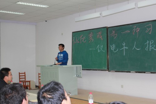 2012年10月25日 18:30,yl23455永利在中心校区李四光楼302教室举办了优秀老员工事迹报告会,此次报告会由公司第八届分团委、员工会主办,特别邀请了yl23455永利2011年度“十佳老员工”黄廷哲同学、免试推荐清华大学研究生(直博)的2009级王春泽同学及免试推荐哈尔滨工业大学硕士研究生的林展汐同学作为嘉宾,为公司2012级全体新生做了一场别开生面的事迹报告会。