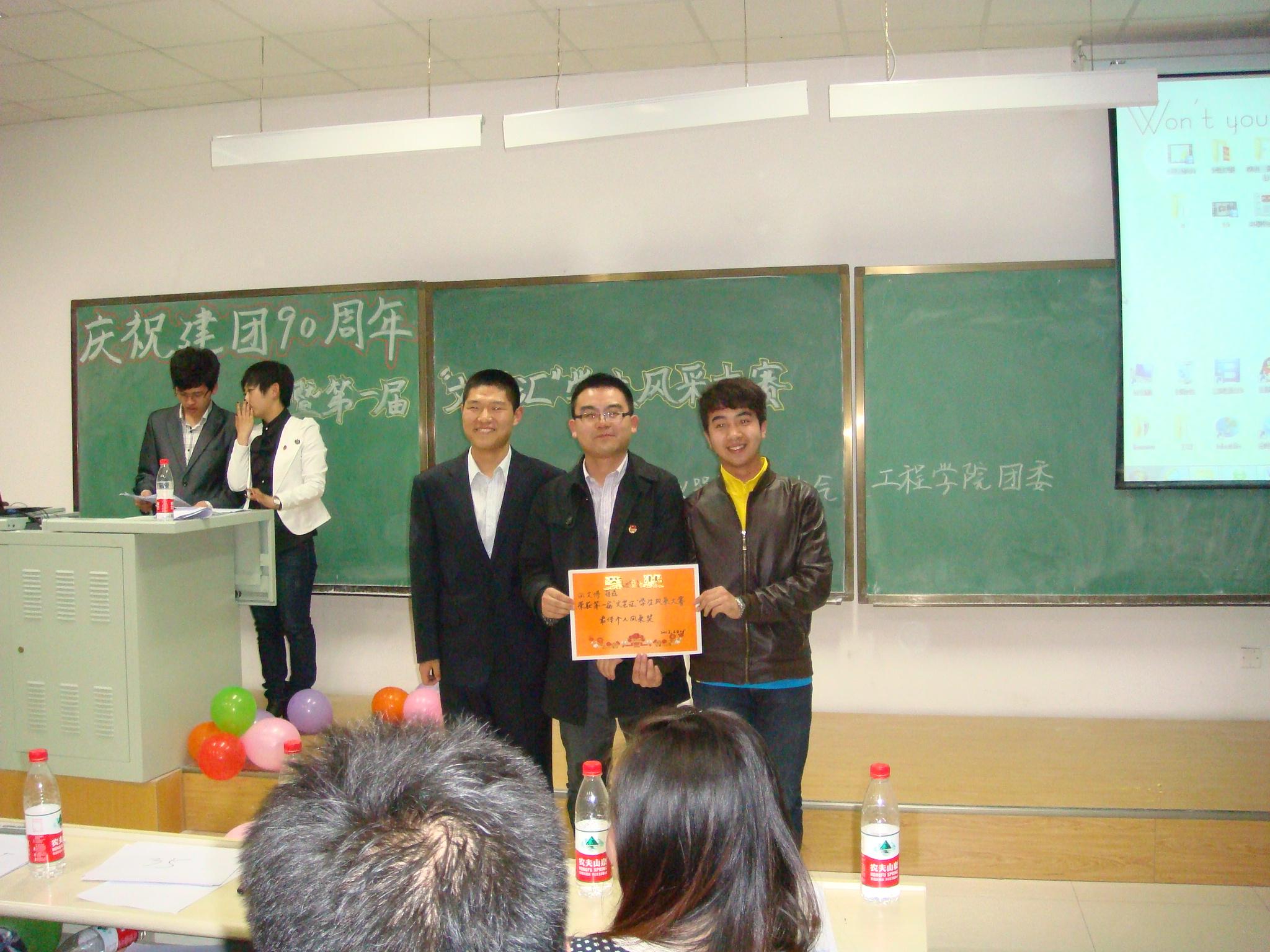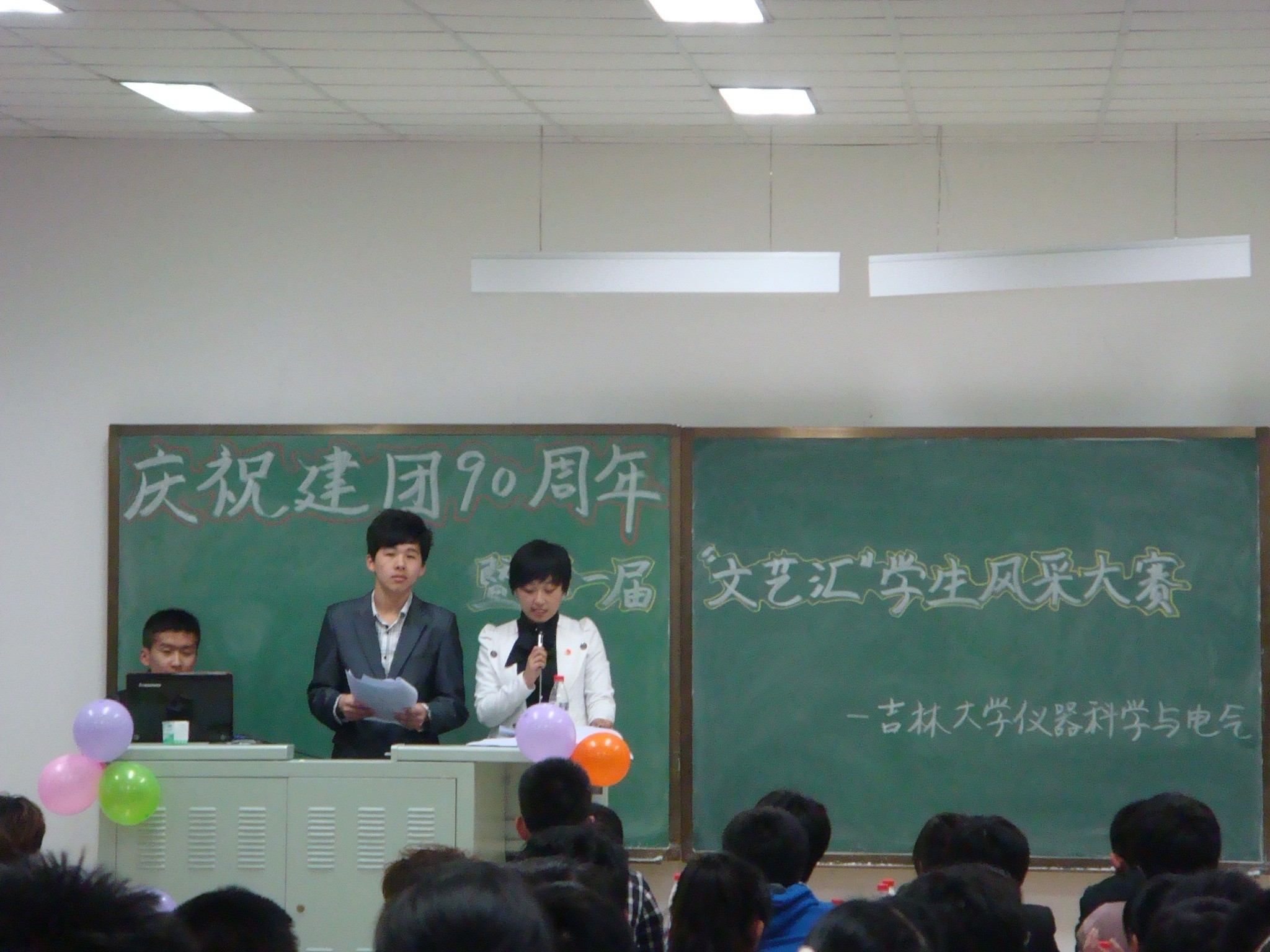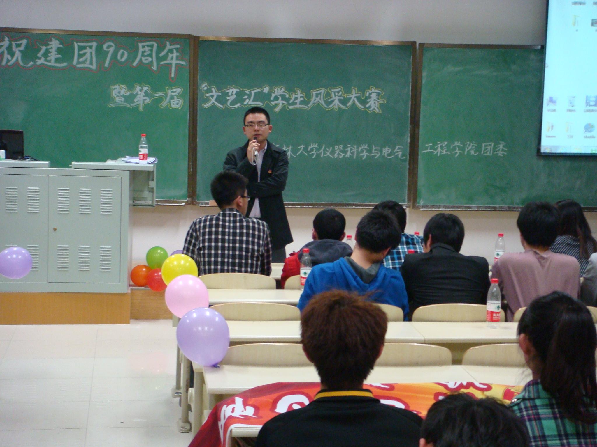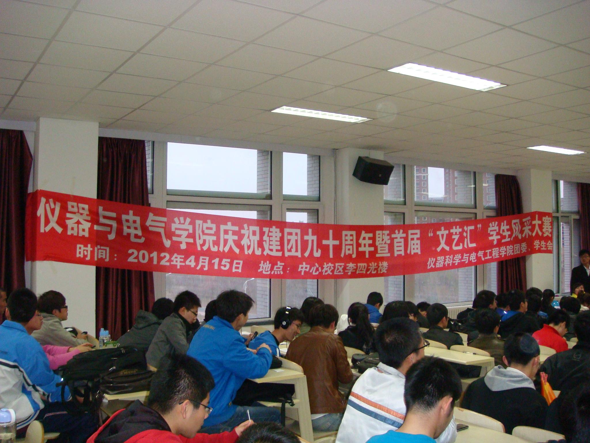 穿岁月峰头,伴历史云烟——2012年是“五四”运动93周年,更是中国共青团成立90周年,为继承五四运动精神,发扬中国共青团的光荣传统,弘扬中华民族的伟大精神,进一步引导广大青年员工坚定社会主义信念,同时为公司广大青年员工提供一个充分展示青春风采的舞台,yl23455永利团委、员工会于2012年4月15日18:00在中心校区李四光楼302教室举办了以庆祝建团90周年——“感怀历史,舞动风采”为主题的第一届“文艺汇”员工风采大赛,院员工工作办公室主任兼2010级辅导员王冕、院团委副书记兼2011级辅导员朱宇、第七届院员工会主席许鹏、第七届分团委副书记包志强及第七届院员工会全体成员、2011级全体同学参加了此次活动,活动由2011级关钊、张楠主持。