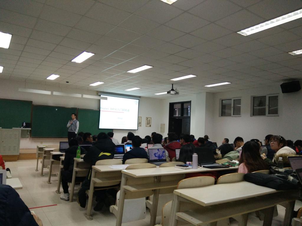 这次培训得到了大家的重视,软件作为仪电人的基本工具在日后的学习工作中更是有着突出作用,所以大家都做了充分的准备工作,如安装软件、借阅资料、观看教程等。培训开始,易晓峰老师做了简单的自我介绍并对本次培训所用软件的特点进行了讲解。紧接着进入培训的重点部分--软件的使用。大家纷纷打开电脑运行软件,一边聚精会神的听着易晓峰老师的讲授,一边认真的跟着老师在电脑上进行操作。易晓峰老师从理论基础开始,立足于PCB工程进行细致的教学,又由PCB工程引入到原理图和PCB图。易晓峰老师从PCB工程创建到绘制成PCB图等一系列步骤都进行了耐心的讲授。整个过程循序渐进、细致入微,得到同学们一致好评。