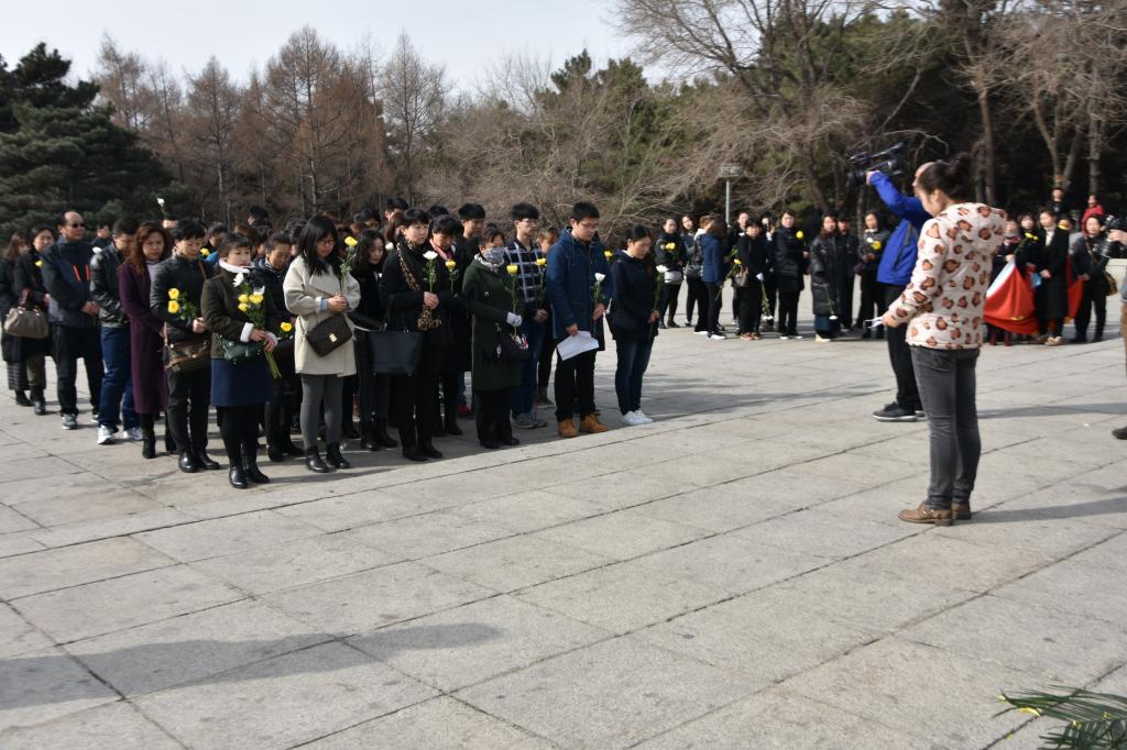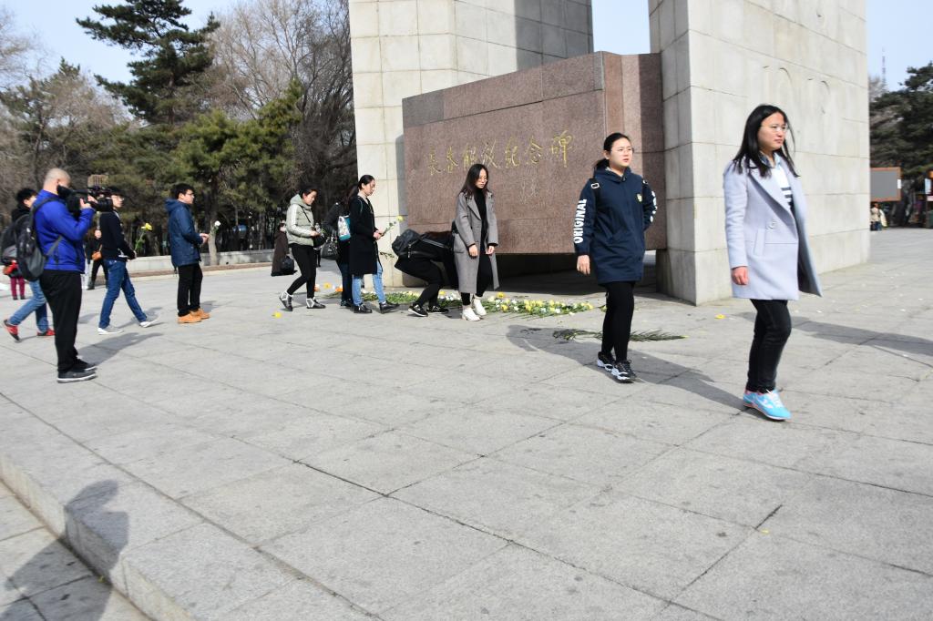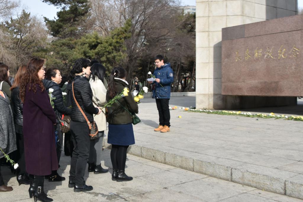 上午7:00,寒风中志愿者们到达南湖公园解放纪念碑处,等待街道工作人员与各居民志愿者到达。上午8:30,各项准备工作就绪,祭祀活动正式开始。街道办工作人员介绍了长春的解放历史和英烈们英勇斗争的事迹,同志愿者们一起面向纪念碑默哀一分钟。居民志愿者发言后,马松辰同学代表全体员工党员和积极分子发表致敬词,表示同学们真切感受到了革命先烈的伟大和崇高,一定会将先烈们的精神传承下去,发扬光大。活动结束前,志愿者们依次向纪念碑献花,表达对革命先烈们的追思与崇敬。