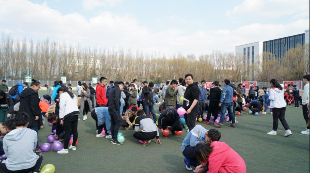 活动伊始,各班级负责人组织同学有序站好,开始热身活动,为接下来的各项活动做充分准备。为增加活动趣味性,指挥人员设计了相应惩罚环节,调动同学们的积极性。第二项进行的是是跳绳比赛。本项活动对各班参赛人数不设限制,只计算在规定五分钟时间内的跳绳次数,并依据积分进行排名。由于活动的竞技性较强,同学们竭尽全力,在运动场上挥洒汗水。接下来,我们迎来了踩气球比赛。比赛中各班同学进入场地,互踩气球,活动现场充满了欢快的笑声。十分钟后计算各班剩余气球数,并进行排名积分。随后进行拔河比赛,我们采用一局定胜负制度。各班通过抽签选择对手,两两进行比拼,逐级比拼,最终决出优胜班级。各班参与拔河的同学齐心协力,场外观众也呼喊加油助威,比赛十分精彩。最后一项活动是扑克比赛。各班级代表队依次上前抽取志愿者面前的扑克牌A-K,用时最少的班级获胜,并进行积分排名。至此,素质拓展活动比赛部分结束,工作人员统计各班总分,进行公示,并由颜培荣同学为获得前三名的班级进行颁奖。