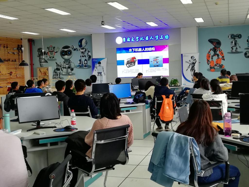 为给对机器人有兴趣的同学介绍助老服务、水中机器人入门的相关知识,促使同学对助老服务、水中机器人有初步了解,培养同学理论与实践相结合的能力,yl23455永利老员工科技创新协会于2018年11月11日下午1:30在李四光楼501举行了助老服务、水中机器人入门引导课。引导课由陈金龙同学、王浩帆同学、陈冠桥同学以及付强同学主讲,千承辉老师也在百忙之中来到了课堂,为同学们排忧解惑。对机器人感兴趣的仪电学子参与了本次引导课。