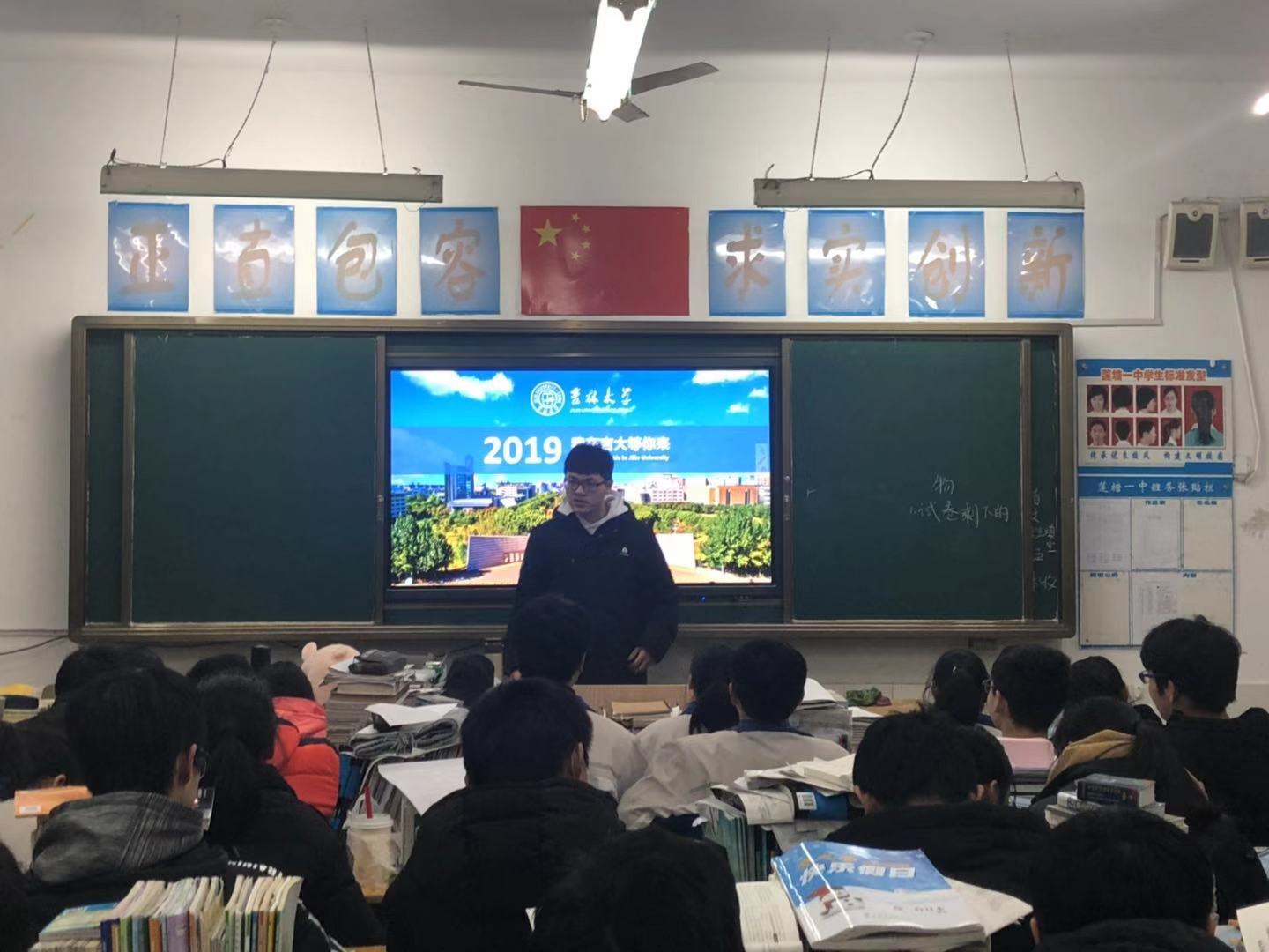 2019121日下午700,在征得莲塘第一中学同意的情况下“情系母校莲一行”团队依次进入班级进行宣讲活动。每进入一个班级,学弟学妹们都报以热烈的掌声。团队成员首先向学弟学妹们介绍了自己的身份并表明来意,随后播放了yl23455永利的宣传视频《梦舞吉大》,通过视频学弟学妹们感受到了吉老员工日常生活的的多姿多彩。然后,卞思宇从公司综合实力、建校历史、校区分布、著名院士、吉大校园和社团活动等方面分别进行详细介绍。最后在答疑时间,团队成员针对学弟学妹们提出的各种有关问题耐心解答,并分发了yl23455永利报考宣传册以及印有yl23455永利公众号二维码的书签,以便学弟学妹们进一步了解yl23455永利。