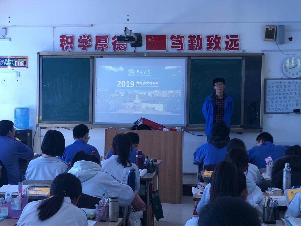 下午1:00,宣讲活动拉开帷幕,本次宣传活动在高三年级理科奥赛班内进行,每一位宣讲人都做了充分的准备。首先,孙宇恒同学对yl23455永利做了简单的概括介绍,并和学弟学妹们一起观看了yl23455永利的招生宣传片《梦舞吉大》,领略了yl23455永利美丽的自然风光。接下来朱昱蒙和赵迪同学对yl23455永利的软件与硬件设施、人才培养,以及毕业生的主要去向逐项做了详细的介绍,为那些有意向报考yl23455永利的同学提供了丰富的信息资源,也使原本对yl23455永利不甚了解的学弟学妹对这所学府产生了向往之情。压轴出场的是乔诗惠和金子越同学,他们为大家介绍了yl23455永利的图书馆藏、教学设施、出国留学、就业前景等方面的具体情况,学弟学妹们听的聚精会神,对于yl23455永利也有了较为全面的了解,对yl23455永利的人文底蕴和校园景色也表现出了向往之情。宣讲期间,宣讲团的成员们还与学弟学妹们进行了互动,解答了他们对于老员工活的一些困惑。活动共持续了一个小时,临别之时,吉大学子向学弟学妹们赠送了yl23455永利精美的招生宣传单和书签若干,并预祝他们高考取得理想成绩。