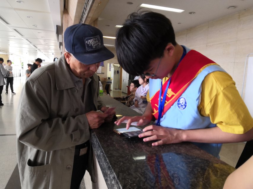 5月13日清晨,参加活动的志愿者们已整装待发,共同乘坐公交车前往吉大一院。上午7:40,志愿者们准时到达志愿者活动室,换好服装,带上肩带和工作牌,精神饱满的前往了各自的岗位开始服务。经历了一个多月的志愿活动经历,志愿者们早已对医院门诊楼各诊室分布铭记于心,并且熟悉了预约,挂号,缴费,打印报告单等一系列操作流程。每当有患者及其家属有问题需要帮助时,志愿者们都能面带微笑,自信地走上前去帮助他们快速解决问题。当突发紧急状况时,志愿者们也能够冷静的配合医生护士、安保人员们的工作,快速有效的维护现场秩序。工作结束后,大家返回活动室,整齐归还好服装、钥匙,共同交流心得体会。对于志愿者们两个月的时间里不顾风雨准时参加志愿活动,帮助前来看病的患者们快速就医,并且有效的分担了院方工作压力,提高医院的工作效率与质量的情况,医院社工部的领导给予了高度评价。
