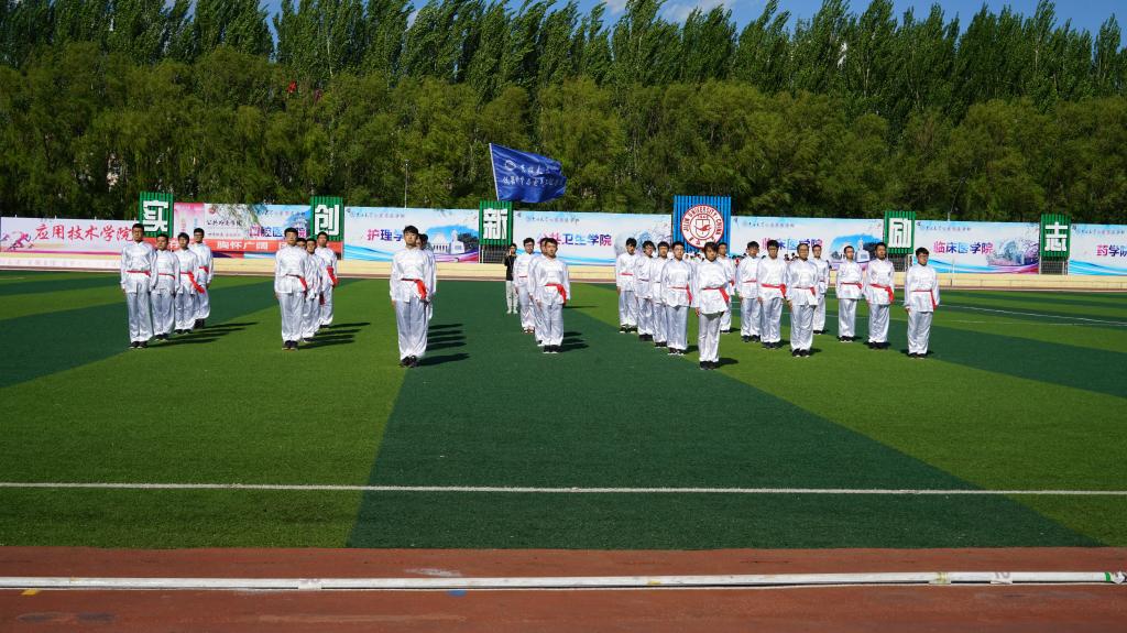 5月24日,决赛如期而至。迎着初升的阳光,长拳队员们早早地在体育场边集合完毕渴望在全校师生和领导面前展现他们的风采。有了初赛的经验,长拳队员们毫不胆怯队员们相互鼓劲随着总指挥一声令下,队员们迈着坚定的步伐步入了绿茵场。一招一式刚劲有力,动作整齐划一,看台上不时发出欢呼和掌声。台上一分钟,台下十年功,同学们夜以继日的练习在今天得到了回报表演完毕后,同学们再一次行抱拳礼。