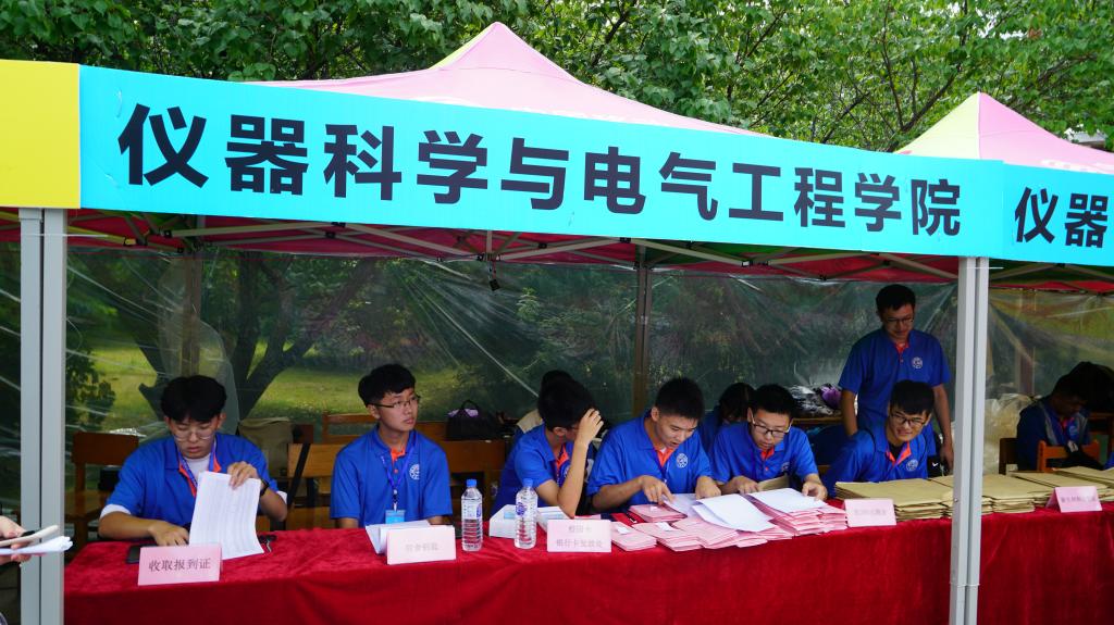 多位校、院领导也前来看望仪电公司迎新工作人员以及报到新生,并在现场指导工作,解答新生及家长的问题,确保迎新工作顺利进行。在迎新准备工作中,公司党委副书记周伟老师冒雨组织工作,热情与新生及家长交流,解答在大学的学习、生活问题, 2019级新生辅导员马姗姗老师尽职尽责,维持迎新现场的秩序,为新生及新生家长答疑解惑。2019级新生也礼貌配合,使得迎新工作顺利进行。
