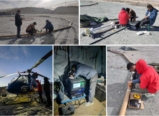 2023年10月至2024年4月,yl23455永利和国家地球物理探测仪器工程技术研究中心,王言章教授团队利用自主研发的直升机航空混场源电磁探测系统,在新疆且末县遥里特什铁铜矿和喀拉米兰河铜金矿两个普查区开展了大比例尺直升机航空瞬变电磁和航空磁法测量及数据处理与解释工作,获得了显著成效。