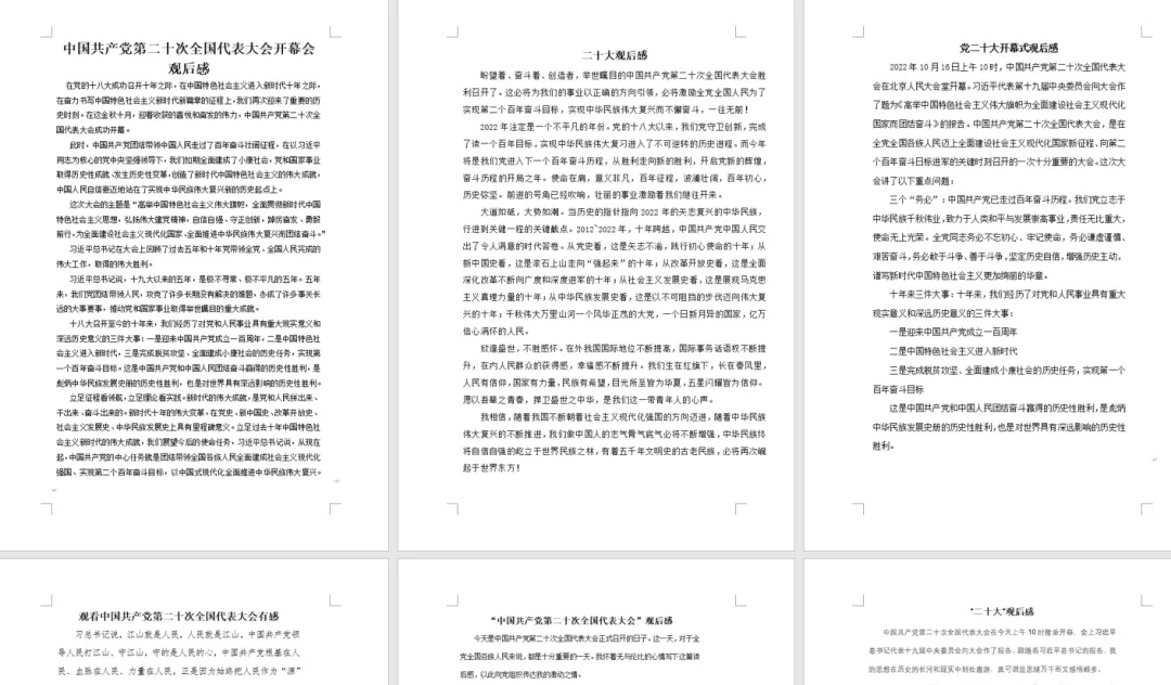 会议后,大家围绕“永远跟党走 奋进新征程”书写自己观看二十大会议后感想。党员马春花在感想中谈到:“习总书记的报告深入人心,值得全党全国各族人民认真学习!身为一名研究生,我一定认真学习新思想,在思想上不断提升自己,向党靠拢,努力成为一名思想上、行为上都十分优秀的中国共产党员!”