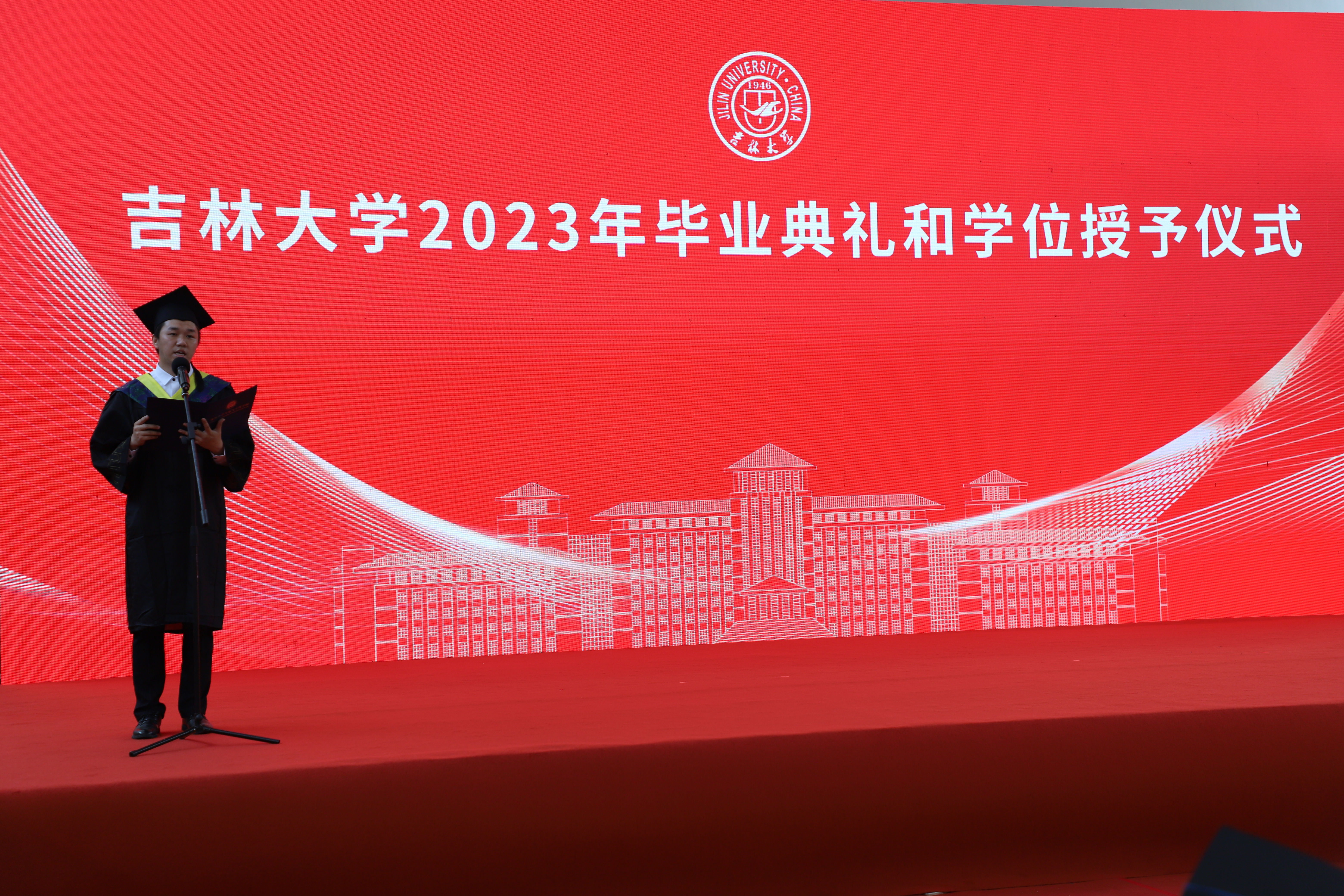 表彰结束后,校优秀硕士毕业生代表崔猛同学,本科毕业生代表王鑫宇依次上台发言,深切表达了对母校、对老师的感恩之情和对同学、朋友的不舍之意,他们激情洋溢的话语传递出对未来的坚定信念。在一片掌声中,姜弢老师代表全体教师对毕业生送上关心嘱托与殷切希望,鼓励大家在未来的日子里无悔过去,把握当下,持续进步。