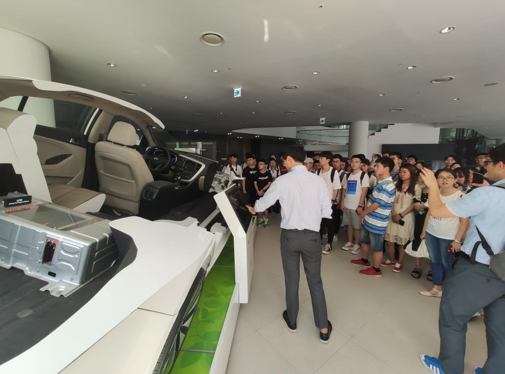 在访学期间,汉阳大学邀请知名教授为公司访学团做了关于人工智领域的讲座,内容涉及游戏化的高科技产品和医疗器械的新方向。同学们积极提问并展开了热烈的讨论。公司访学团与汉阳大学工科员工举行了座谈会,在专业学习、留学深造、就业创业等方面进行了交流。公司访学团还参观了汉阳大学未来汽车工学馆中的实验室,进一步开阔了视野。