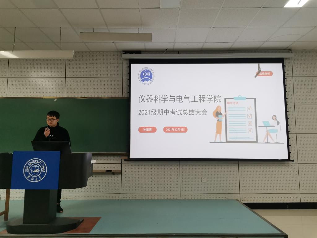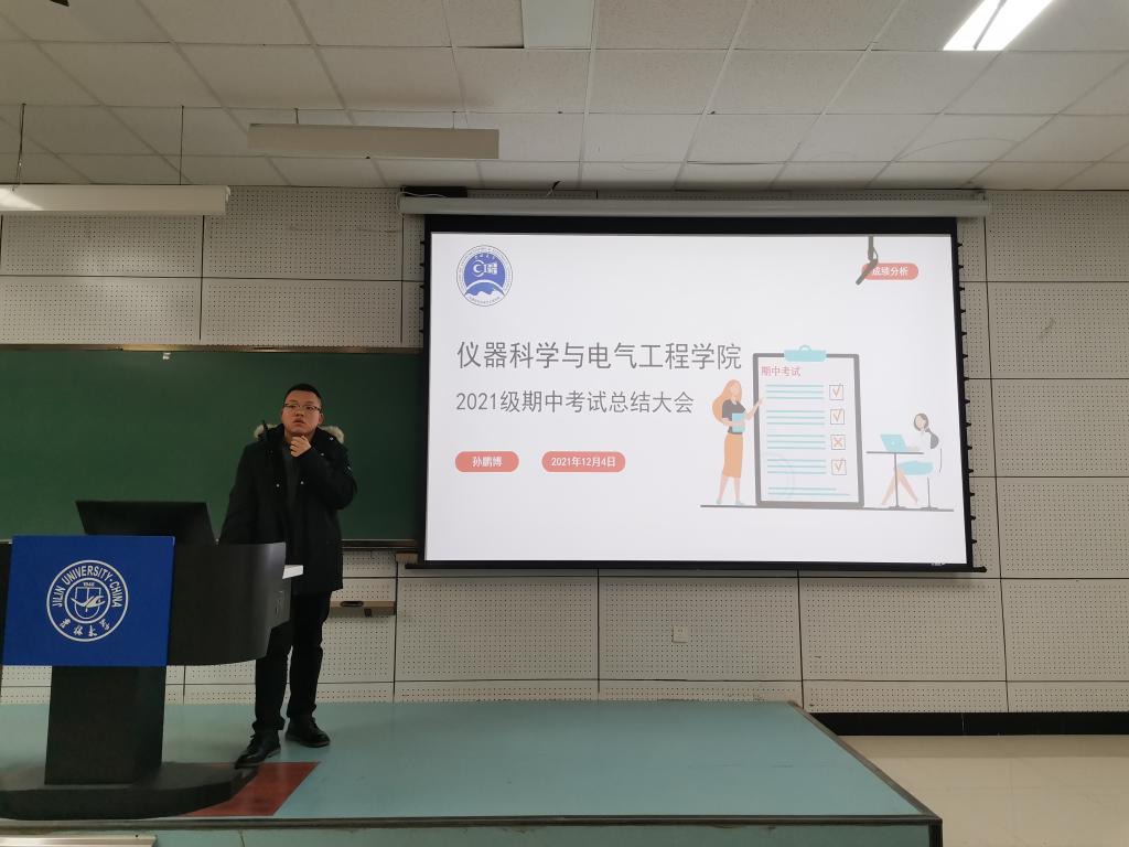 为充分发挥期中考试自我检测和阶段性总结的效果。2021124号晚5点,yl23455永利在李四光楼104教室组织开展2021级员工期中考试总结大会,辅导员孙鹏博老师对本次期中考试进行了总结。