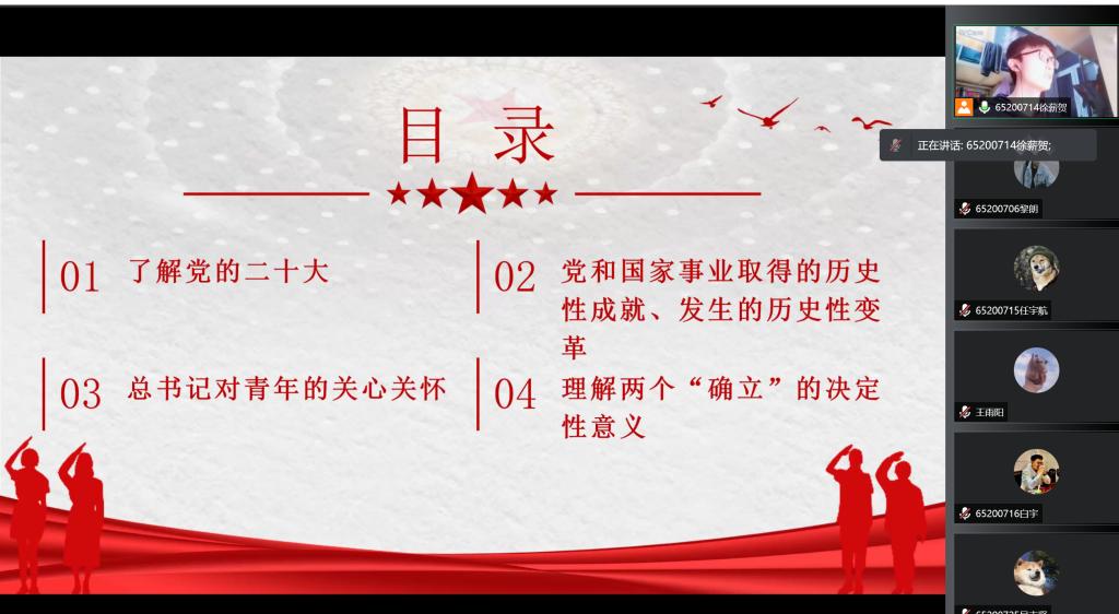 为迎接党的二十大胜利召开,引领广大青年团员坚定跟党走,yl23455永利652007团支部开展“喜迎二十大,永远跟党走,奋进新征程”主题团日活动活动由团支徐薪贺主持