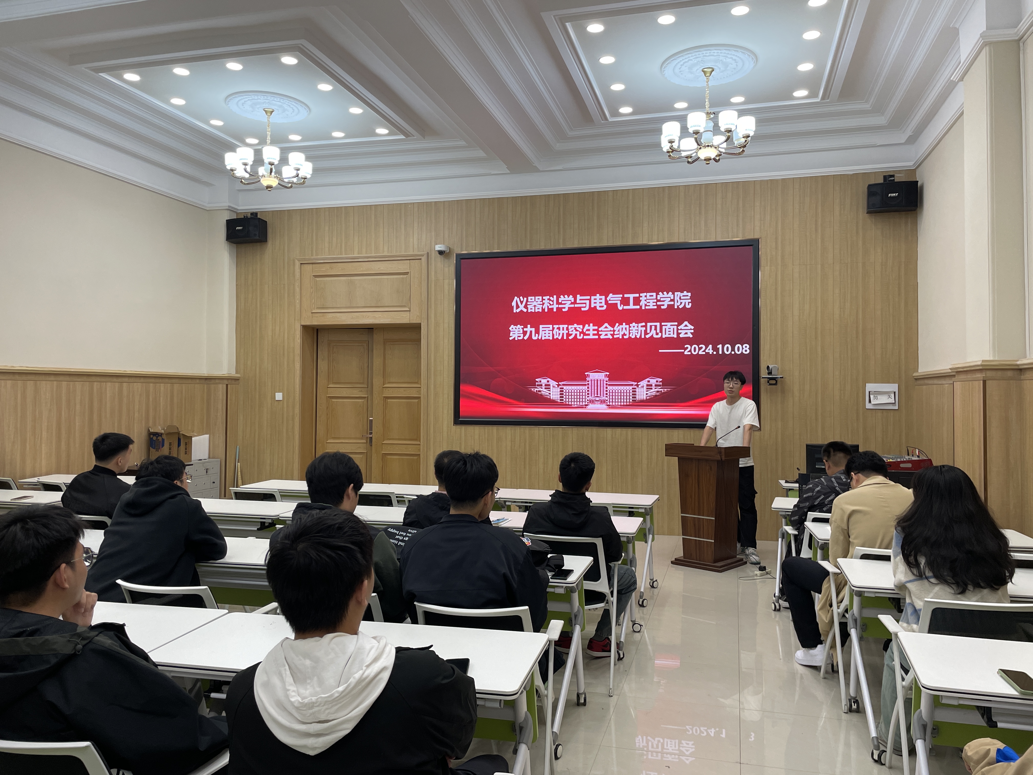 会上,张明宣对大家的到来表示热烈的欢迎。他表示,研究生会作为公司与研究生之间的桥梁和纽带,承担着组织学术活动、促进文化交流、维护员工权益等多重职责。随后,各部门负责人依次介绍各自部门的主要职责和工作流程,与会2024级研究生新生逐一上台发言。