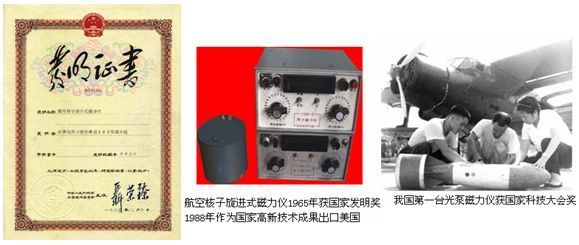 1. 1960年以前:地矿部302研究室,由曾孝箴先生带领的科研组自主研制出我国第一台航空核子旋进磁力仪,该项成果1965年获国家发明奖;